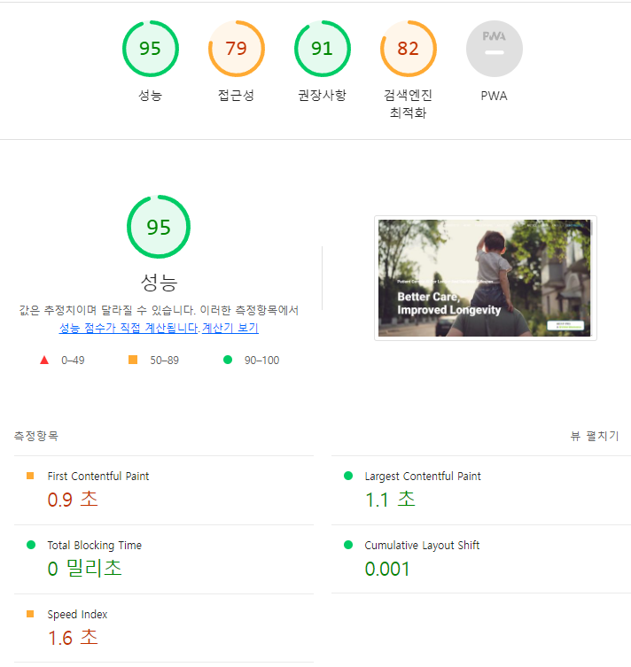 성능과 접근성 점수가 낮아서 보완해보고자 했다.