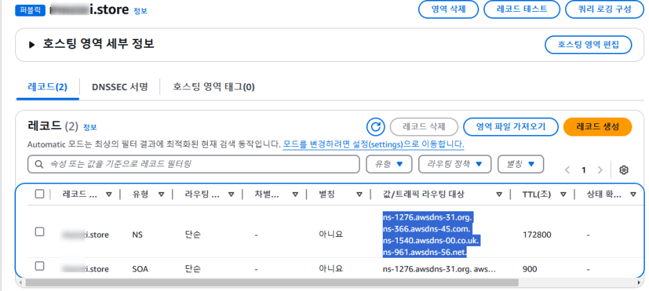 네임서버를 aws로 변경. 라우트53이 네임서버임.