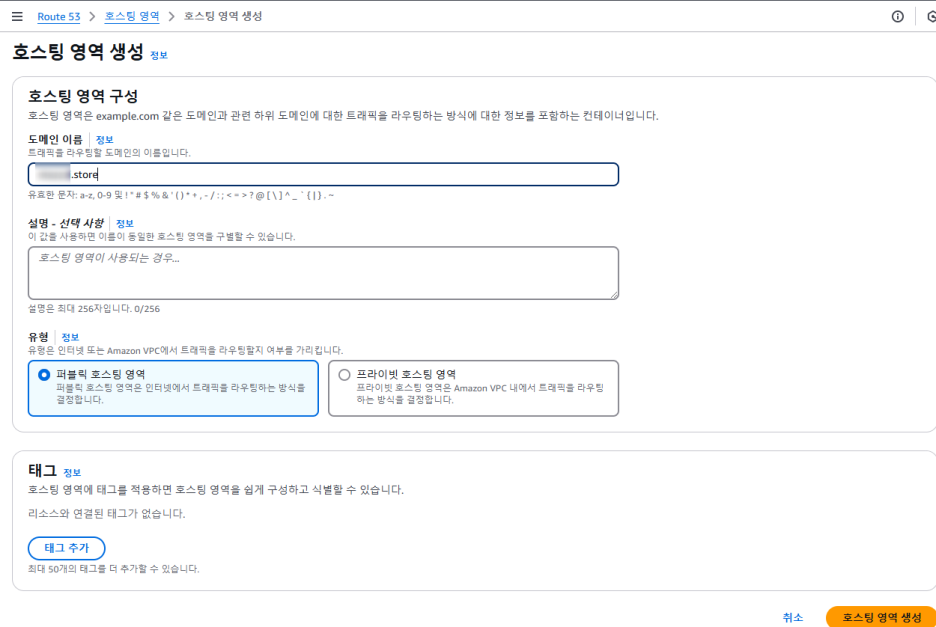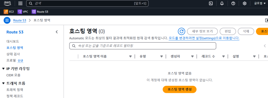 호스팅 영역당 도메인 1개씩. (12시간 이내에만 지우면 비용 안나옴)