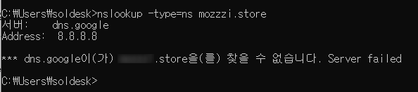 nslookup -type=ns 자기가비아도메인