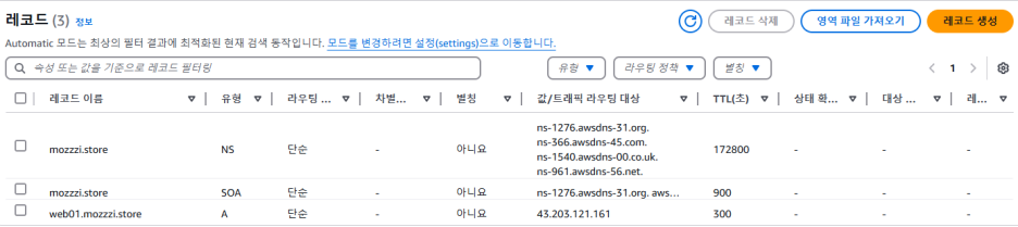 | AWS수업(2) ROUTE 53 설정하기 (0) | 2025.02.23 |