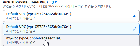 내 웹서버가 있는 같은 vpc 선택. (저번에 만들어놓은 my-vpc)