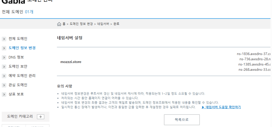 도메인 이름에 가비아 입력 (mozzzi.store)