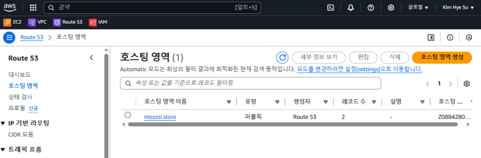 왼쪽 메뉴 > 호스팅 영역