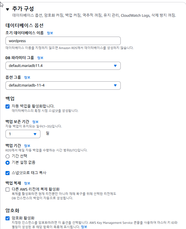 RDS 데이터베이스 생성하기