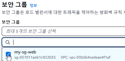 전에 만들어준 my-sg-web으로 지정