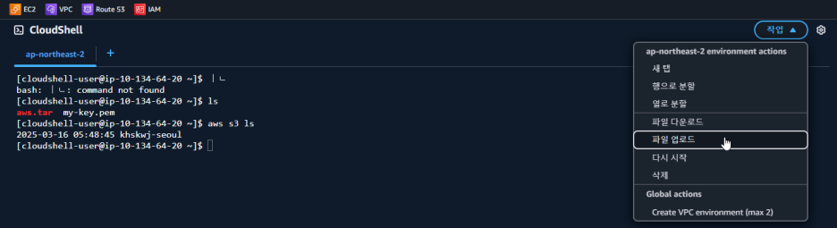클라우드쉘 > 작업 > 파일 업로드