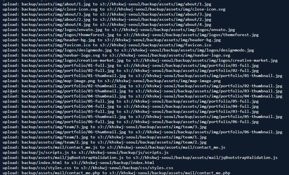 aws s3 sync backup s3://khskwj-seoul/backup/